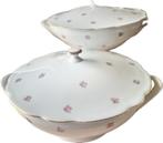 2 identieke groententerrines met deksel van bavaria schumann arzberg, type elly uitgevoerd in wit porselein en versierd met roze r