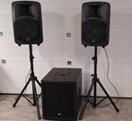 Zie foto's ter info dap- clubmate- 2 actief 15" baskast . Das-dr 112 topkasten 12" speakers passief 2x statief en de nodige aansluitkabels erbij . Testen geen probleem prijs doe een bod