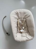 Tripp trapp newborn set met greige hoes. Gebruik ervan is mogelijk vanaf de geboorte tot 9kg. Speelgoedhanger is inbegrepen.