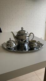 Thee/koffie set porselein wit /zilver zilverkleurig dienblad . Nooit gebruikt ,alleen als decoratie demeyere inaltherable .