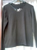 Zwarte trui van rabe maat 38 met versiering bovenaan de trui (kraaltjes) en sierknoopjes aan de mouwen d/nl: maat 38 b/f: maat 40