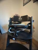 Kinderstoel die meegroeit met afneembare eettray. Enkel op het eettray enkele gebruikssporen. De kinderstoel wordt geleverd inclusief een 3-punts veil