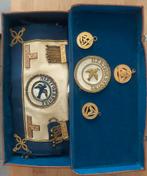 Franc maçonnerie décors et insignes. Objets anciens dans une valise tablier, écharpe, médailles envoi mondial relay 6,00€