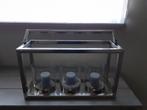 3 windlichten van glas in een inox frame. Aangekocht bij dome deco breedte 23cm x lengte 64cm hoogte 36cm glas is 21cm hoog en doorsnede is 16.5Cm mooi om seizoensgebonden te decoreren zelf afhalen in