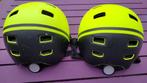 Lot de 2 casques vélo enfant b-twin mollette et sangles tout à fait fonctionnelles 52 à 55 cm (taille s) jaune fluo et noir jamais accidentés traces d'usure sur la coque, voir photos