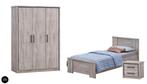 Complete slaapkamer met bed 90cm, lattenbodem en matras, 3-deurs kleerkast en nachtkastje. Nieuw, zit nog in verpakking. Weg wegen