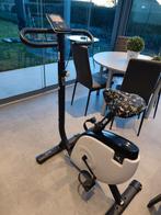 Hometrainer fiets van het merk domyos vm510. Stuur en zadel in de hoogte verstelbaar. Computer werkt op electriciteit. Heeft wieltjes waardoor het gemakkelijk te verplaatsen is. Zadel was op 2 plaatse