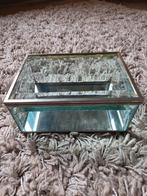Geslepen glas, omgeven door metalen kader, spiegelbodem 15/10 cm, 8 cm hoog.