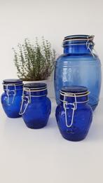 1 grand bol et 3 petits bols assortis, joliment exposés et très décoratifs. Verre bleu, facile à fermer.