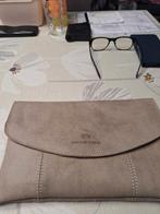 Gala of suite tasje,propere staat, kleur taupe met rond houten handvat alsook schouderriem. .Fijne kwaliteit. (L.26Cm..Br.18Cm.)