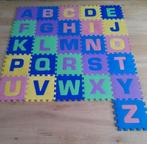 Tapis puzzle alphabet 26 dalles en mousse eva, sans solvants ni formamide. Dimensions : 32 × 32 cm par dalle, surface totale d’environ 2,5 m², épaisseur 14 mm, lavable. ÉTat utilisé et pas en parfait