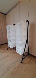 Zeer stevig kledingrek (zwart) inclusief twee opbergvakken met velcro afmetingen: zie bijgevoegde foto's kledingrek kan in twee delen uit elkaar gehaald worden met wieltjes om gemakkelijk te verpl