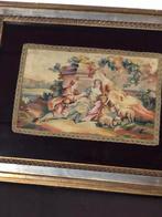 Scène médiévale sur toile dans une fête passée en velours bordeaux, chargeur intact dim. 32 X 41 cm. Parfait état enlèvement ou ex