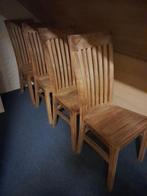 4 masief houten teakstoelen,de stoelen zijn in mooie staat...€25 stuk of €80 voor de 4 samen