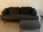 Huslta sofa zwart 2 zit met poef. Krassen door poes aan 1 kant zoals zichtbaar op foto.