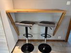 Tabourets haut de bar et table bar en bois massif en lamellés collés. Tabourets en excellent état comme neuf. Table bar suspendu e