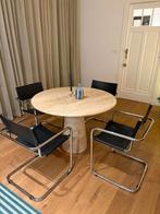 Set de 4 chaises en métal et cuir dans le style de marcel breuer. Années 1970s en bon état, pas de déchirure visible sur le cuir e
