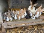 Jonge vleeskonijnen beschikbaar, deze zijn 8 weken oud en eten reeds goed alleen. Zijn samen te koop of afzonderlijk 7€/stuk. Moeders staan mee op de eerste foto de 2de foto is de vader.