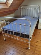 Groot eenpersoonsbed (twijfelaar) in metaal (ijzer) uit grootmoederstijd, geschilderd in satin witte metaalverf. Afmetingen l 203 cm, b 124 cm, h 40 cm, hoofdzijde 138 cm, voeteinde 111 cm, in goede s