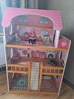 Mooi, gebruikt poppenhuis. Het poppenhuis is nog in goede staat en kan zeker nog een ronde mee. Er zitten wat gebruikssporen op, maar dat doet niets af aan het speelplezier. Inclusief meubels en poppe