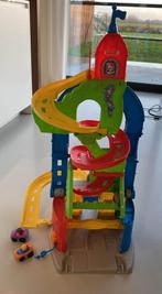 Autobaan little people kan met makkelijke knop omgebouwd worden tot een andere autobaan (hoog en laag ) twee auto’s benzine pomp heel goeie staat en h