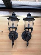 Twee buitenlampen uit staal/ijzer (zwaar) hoogte: 67cm diameter bevestiging: 20 cm breedte: 22cm diepte: 28cm