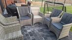 Tuinstoelen altijd hebben ze binnen gestaan. Na onze verhuis staan ze buiten. Ze zijn in perfecte staat. Ze mogen weg omdat wij ge