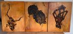 Te koop: een prachtige triptiek van schilderijen, gesigneerd door kunstenaar pockelé henri. De werken tonen gedetailleerde fossiel