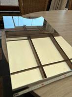 Spiegel 56 hoog en 35 cm breed is bevestigd op een plaat met hang bevestiging op.