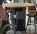 2 grandes superbes tables rondes identiques horeca , bistro, resto taverne, réceptions, walking dinners , loft industriel etc. Très solide et lourd, traitées poudre mine de plomb spécial,topqualité! P