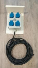 Klein werfkastje of verdeelblokje met 4 stopcontacten en 10 meter soepele kabel 2.5 Mm2, super handig voor de bijdehandse harry op houten plaat en haakjes om op te hangen tegen de muur