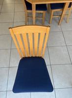 8 eiken eetkamerstoelen met blauwe gestoffeerde zitting. Zijn niet alleen supercomfortabel, maar ook stevig! Massief eik en in zee