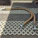 2 tuyaux d'incendie de 4 mètres de long, avec filtre d'aspiration et porte-filtre. Assis près d'une remorque de camion