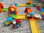 Uitgebreide bouwset v-tech toet-toet treinen. Met station, tunnels, slagbomen… in goede staat. Met meerdere werkende treinstellen!
