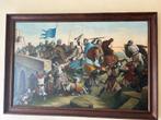 Grand tableau impressionnant représentant une scène de chevaliers. L'œuvre est peinte à la main sur toile et est en bon état.