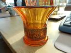 Prachtige art deco vaas in geperst glas (verre moulé pressé) van 1930 in de roze kleur ‘rosaline’. Tjechoslowakijke stöhzle (hermanova hut) - s. Reich & co) versierd met mooi patroon evenals twee