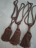 Donkerbruine en grijze flossen voor gordijnen samen te houden. Bruine 13 stuks, grijze 4 stuks. 3 Euro per stuk. Voor het ganse pakket 45 euro nieuwe staat. Opsturen met bpost.