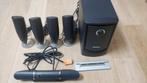 Dell modèle mms 5650 4 haut-parleurs séparés (avant/arrière et gauche/droite) 1 haut-parleur central avec réglage du volume à placer sous écran (socle métallique fourni) 1 caisson de basses avec inten