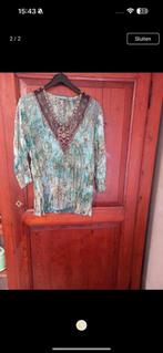 Een mooi bloesje met bruine v-hals met pailletten. Hoofdkleur groen. M/l. Kan gedragen worden voor feesten. Ik verkoop dit omdat ik nu een xl heb.de staat is perfect.