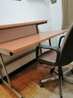 Meuble de bureau à armatures métalliques avec 2 étagères, en excellent état longueur 1,20m largeur planche du dessous 0,80m largeur planche du dessus 0,40m hauteur en bas 0,74m. Hauteur en haut 1 m
