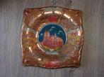 Ancienne assiette carrée vintage (en bronze ou cuivre je ne sais pas), souvenir d'allemagne; 20 cm de côté; envoi pour 6 euros dans un point colis bpost;