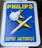 Très rare panneau d'affichage en émail philips des années 1930. Ce panneau convexe mesure environ 30 x 39,5 cm. Un superbe objet de collection pour les passionnés de philips. L'enseigne présen