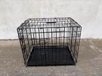 Zwarte metalen hondenbench met plastieken bodem