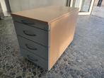 Ladeblok op wielen. 3 Grote laden en boven een pennenlade. Gemaakt uit lichte beuk. Chromė handgrepen. Afmeting: 80 x 42 x 57 cm.