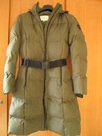 Kaki damesjas. Maat 36 merk hv-society mooie damesjas met zwarte ceintuur. Jas met afritsbare kap . Kap met aantrekkoord. Rits in