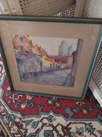 Mooie ingekleurde litho van een dorpszicht getekend en genummerd zie foto afmeting met kader 39x34 zonder kader 26x21 enkel ophale