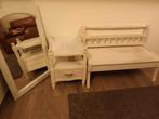 Mooi gepattineerd bankje, bijzettafeltje en spiegel. Per stuk 30 euro of 75 euro alles samen.