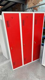 2 rode, metalen lockerkasten te koop met 3 lockers per kast. In nieuwstaat. Inclusief kledinghaken en sleutels afmeting kast: 1,8m hoogte 1,2m breedte 50cm diepte €50 per kast moet weg wegens opr