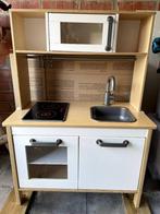 Houten speelkeuken van ikea incl. Verstelbare poten. Kookplaat werkt op 4 aa-batterijen (niet inbegrepen). Gebruikt maar nog in go