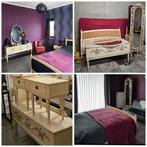 Vintage bed, gebroken wit craquelé, met zwart stof bekleed, 140 breed (twijfelaar), incl lattenbodem en net matras indien gewenst. 2 Nachtkastjes met